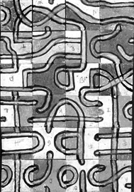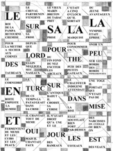 Isabelle Dubosc a mis au point des alphabets figurés, dont les «lettres» sont fabriquées à partir de formes géométriques et de couleurs simples. En transposant dans ces nouveaux alphabets certains textes qui reposent sur des manipulations littérales, comme les poèmes hétérogrammatiques de Perec42, on obtient des tableaux nouveaux. (n° 20)